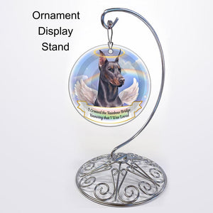 Rainbow Bridge Memorial-Doberman Blue Cropped Porcelain Hanging Ornament