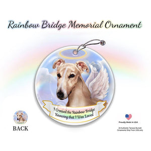 Rainbow Bridge Memorial-Greyhound Cream & White Porcelain Hanging Ornament